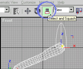 |  | Daha sonra Bu Spheregizmo yu Scale yaparak uzatmamız gerekiyor, ama normal scale değil (normal scale sadece büyütmekte kullanılır) Scale düğmesinin üzerindeki küçük oka basarak açılan pencereden ortadaki scale ikonunu seçiyoruz. Resmi aşağıda görülmektedir. bu düğme basılı iken cismi büyütürseniz boyu uzayacaktır. |