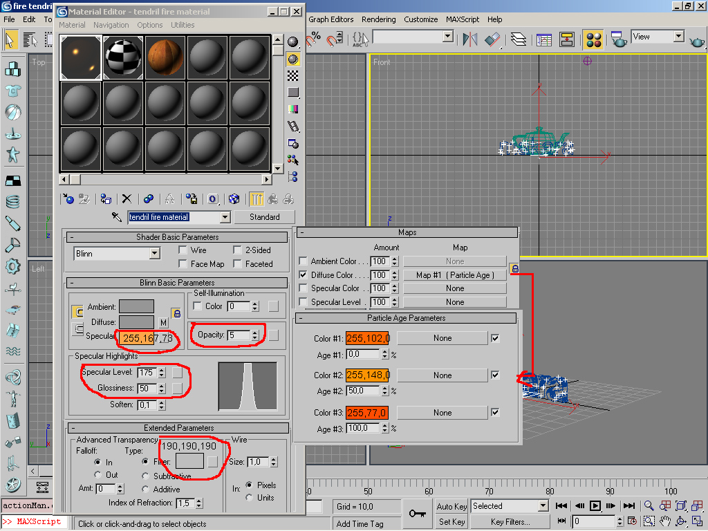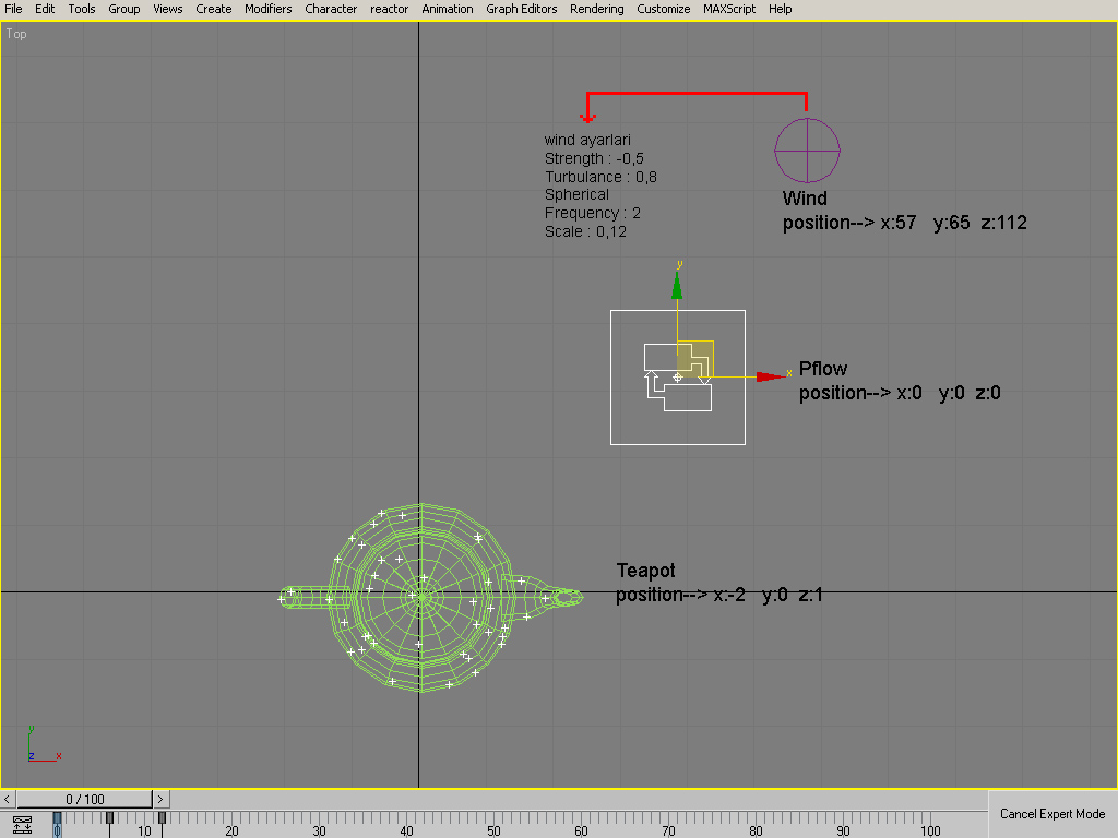 birde material hazırlayıp material dynamic´e ekleyelim (material´i alın pflowdaki material dynamic bölümünde none yazan yere taşıyıp bırakın instance´ı işaretleyin ) bitsin..