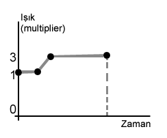 yapmayı düşündüğümüz eğri resimdeki gibi olacaktır. ışık 1 değerinde iken önce 3 değerine yükselecek sonra bu değerde sabit kalacak. sonra aniden düşecek.