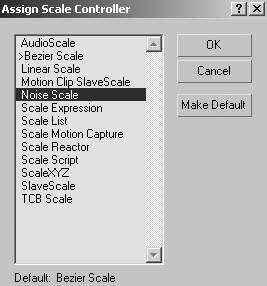 Noise Scale seçimini yaptığımız listedeki diğer seçenekleri inceleyelim. Bunların aynısını TrackView penceresinde de görebilirsiniz. Bu pencerede görebileceğinizi seçenekler hareket veya dönme özelliğine göre değişiklik gösterir.