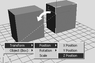 ikinci kutuya ait hareket, dönme ,büyüme ve kutu özelliklerinden herhangi birini birinci kutu ile ilişkilendirebilirsiniz. Bu seçeneklerden Position(hareket) bu uygulama için aradığımız özelliktir. Yukarı ve aşağı hareket için Position >Z position seçeneğini işaretlemelisiniz.