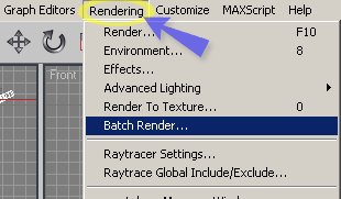 3dsmax rendering menüsünden Batch Render i seçeriz.