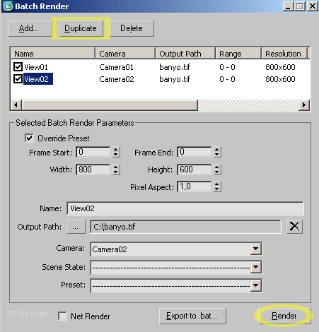 Sahnemizi farklı açılardan render veya aynı kameradan farklı boylarda render almak için batch renderi kullanıyoruz.