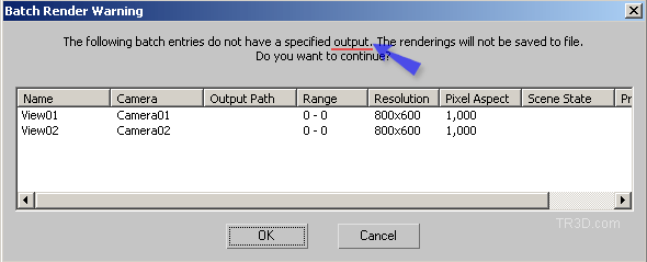 Eğer render hemen başlamayıp bir hata verirse bu hatayı dikkatli okuyun. çünkü aşağıdaki gibi bir hata yazıyorsa Output seçeneği belirtilmemiş demektir. yani hiçbir dosya kaydedilmez.
