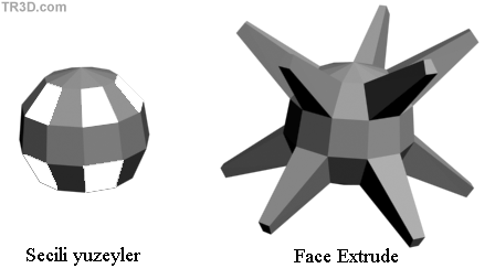 Seçili  yüzeyleri yükselterek yeni yüzeyelr oluşturur. Bu modifier kullanılmadan önce  Mesh select veya Edit Mesh uygulanıp yüzey moduna geçerek bazı yüzeylerin  seçilmesi gerekir. Edit Mesh aracını kullanarak benzer şekilde yükseltme işlemi  yapılabilir faakt bu aracın alt bileşenlerinden Center hareket ettirilirse yükseltilen  kenarların konumu değişir.