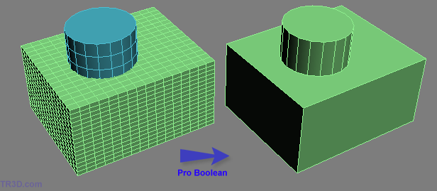 Boolean  ile bir cismin hacminden diğeri çıkarılabilir veya kesaişme noktasındaki hacim  yeni bir cisim oluşturmakta kullanılabilir.