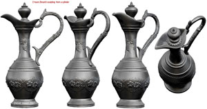 Modelleme kısmı bittikten sonra, gerekiyorsa modelin topolojisini baştan örüp ardından UV’sini açıyorum. Kaplamalar’ı boyamaya Zbrush3’ün polypaint araçlarıyla başlıyorum genelde. Eğer ciddi bir kaplama yapmam gerekiyorsa Zbrush’ta kabaca boyama yaptıktan sonra kaplamaları photoshopa alıp orada sonlandırıyorum. Modellerimi render için Cinema 4D kullanıyorum.