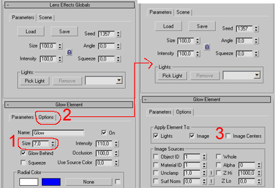 environment panelinin yanindan effect kısmını açın...oradan add e tıklayıp lens effect ekleyin...şimdi lens effect parameterin altındaki kısımdan 2 tane glow ekleyecegiz...