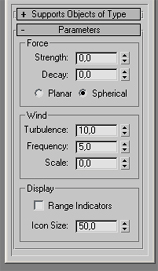 Space warps menüsü altındaki force dan wind ekleyelim. X=0 Y=0 Z=0 koordinatlarina. XYZ = 0 pozisyonunu tercih etmemin sebebi .belli bir yöne çekim yapmasını engellemek..Spherical yapmamın sebebi de ok yönünde bir hareket yapmasını istemiyorum her yöne hareket yapsın parçacıklar..