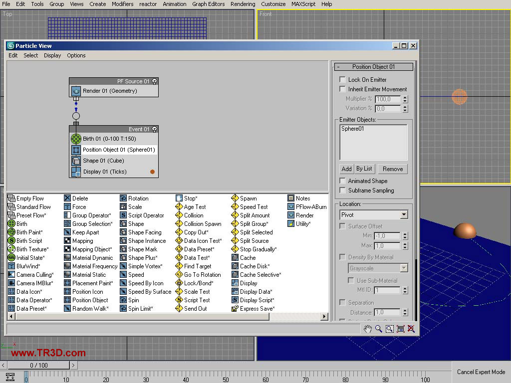 Position Object : emitter object : sphere location : pivot