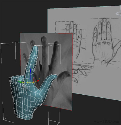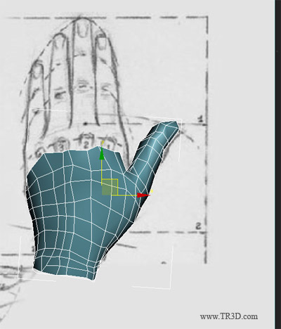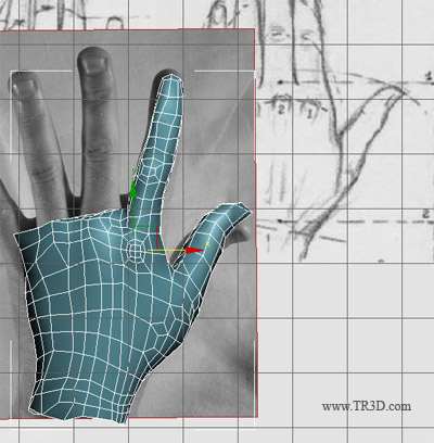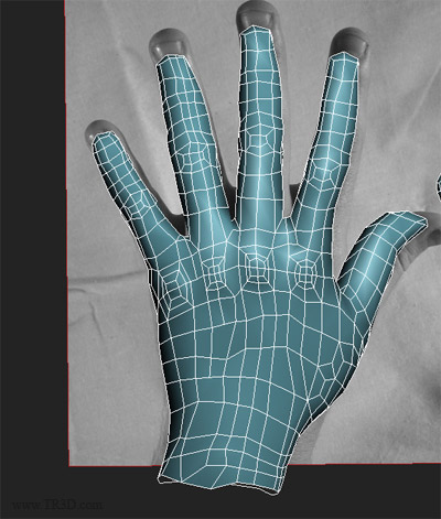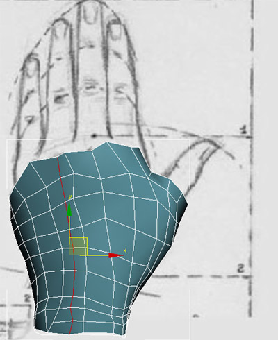 Kullandığım teknik "edge loop" modelleme tekniğidir. Bir anatomi kitabından almış olduğum bir el çizimini görüyorsunuz.