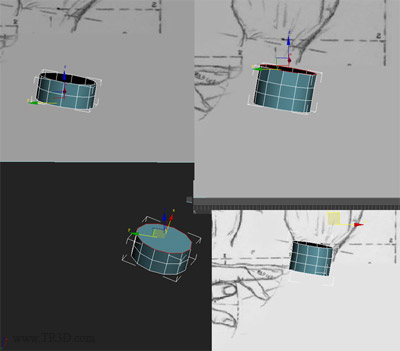 Şimdi tüm viewport’lardan bakarak başparmağı oluşturuyoruz.