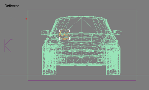 Bir tane normal deflectorüde arabanın tam arkasına yerleştirelim..Bunun nedenini pflow aşamasına geldiğimizde anlatacağım...Bunun parametrelerini ellemeyin ..öyle kalsın..(Aşağıdaki resimdeki gibi arabayı kaplayacak ve yukarıdaki resimdeki gibi arabanın arka bölümünde olacak..)