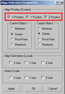 Bunun için pflowu açıp displayı none yapın ..böylece teapot ortaya çıkmış olması gerek.. Şimdi mesher seçili iken align tuşuna basıp