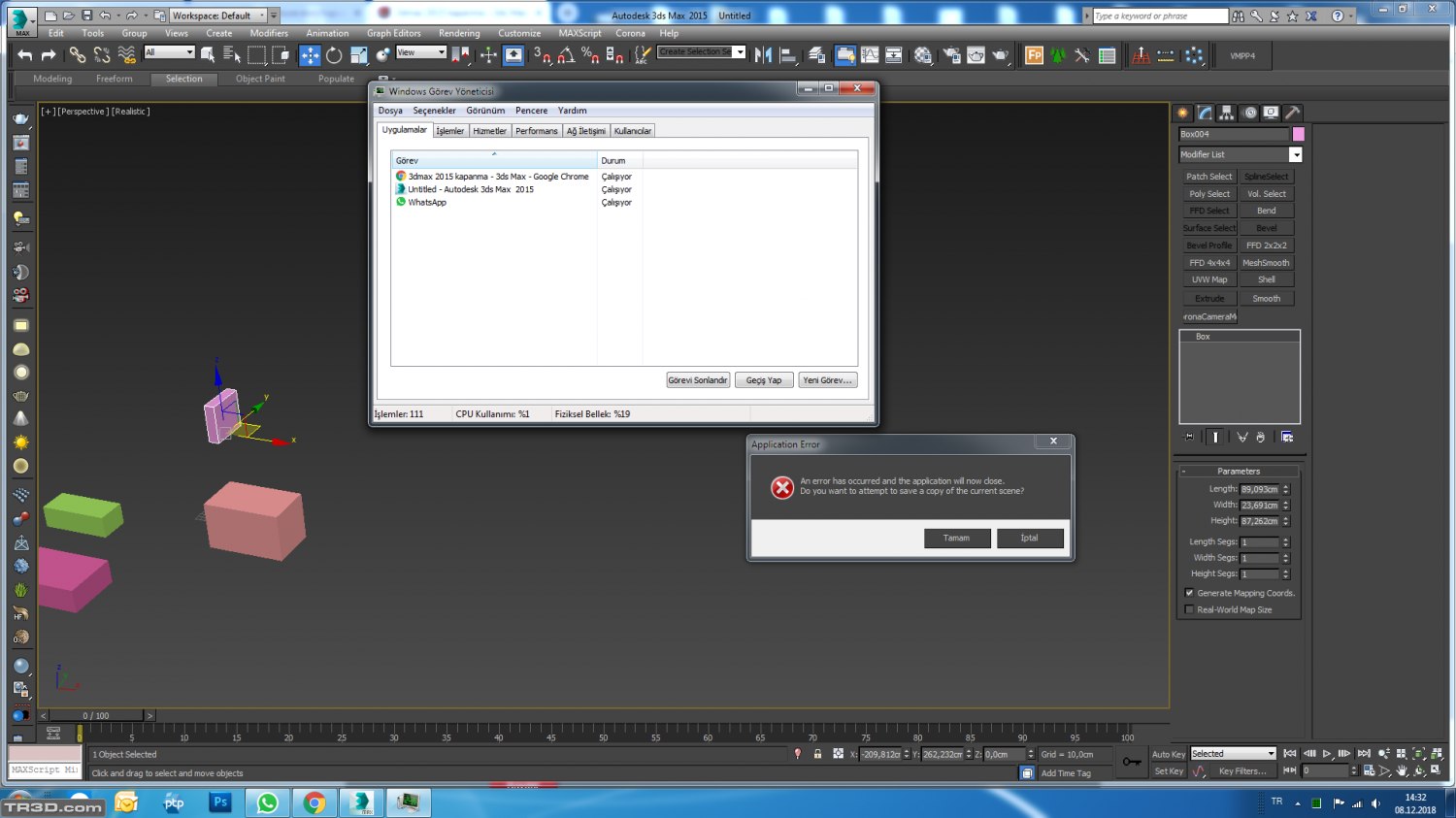 Merhaba arkadaşlar 3d max 2015 proğramında sahnemizde çalışırken geri gelme komutu kullandığımız zaman max hata verip kapanıyor...(geri komutunu örneğin 5 defa yapsak birinde kesin kapanıyor , sahneden kaynaklanmayan bir sebep çünkü sıfır bir dosyadada yapıyor çözümü olan var mı arkadaşlar...