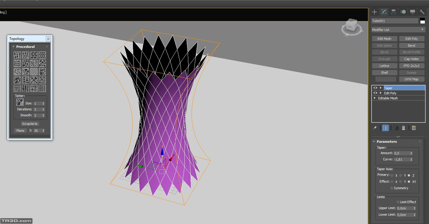 2. Adım Aşağıdaki görsel; Taper Modifier'ı uygulamak.