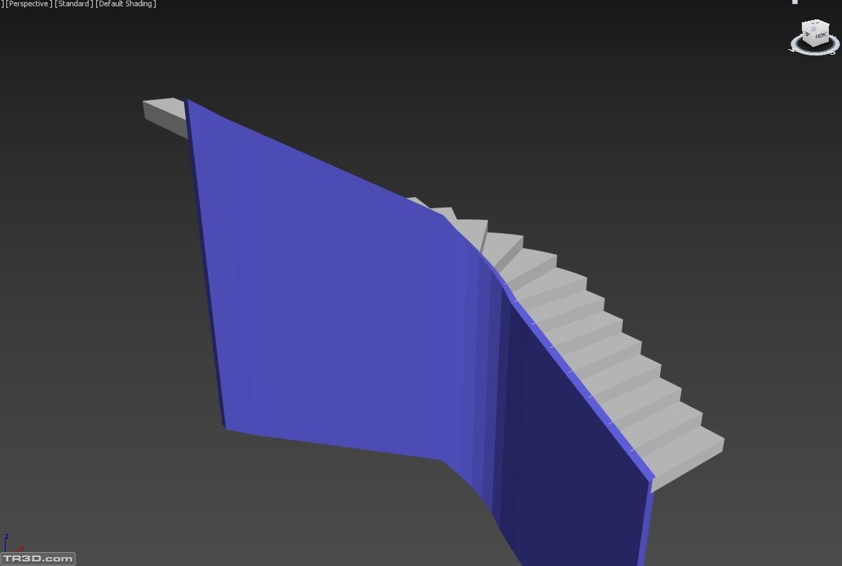 Ben şöyle bir yol izlerdim. Üst görünüşten line ile 2,5 snap kullanarak korkuluğun path’ini çizerdim. Birinin radiusu “0”, diğerinin radiusu “iki kat arasındaki kot farkı” kadar olan iki adet circle da çizerdim. Sonra path’i seçer Create menüsünde Compound Objects’ten Loft aracıyla boynuza benzer bir model oluştururdum. Loft ayarlarında Path’in 0 percent’ı yarıçapı 0 olan circle; 100 percent’ı yarıçapı kot farkı kadar olan circle seçilerek yapılmalı. “Cap Start” ve “Cap End” işaretsiz olmalı. Aynı zamanda Loft ayarlarından Linear interpolation işaretli olmalı. Bu şekilde loft ile boynuz şekli modellendikten sonra editable poly’e dönüştürüp (üzerine turbosmooth atıp kavisi ayarlanabilinir) üzerindeki hatlardan uygun olanını edge ile seçip create shape from selection ile istenilen korkuluk path’i oluşturulabilir. Sonra nasıl bir korkuluk profili isteniyorsa onu path’e uygulardım. Çok uzun ve zor gibi görünse de gözünü korkutmasın.