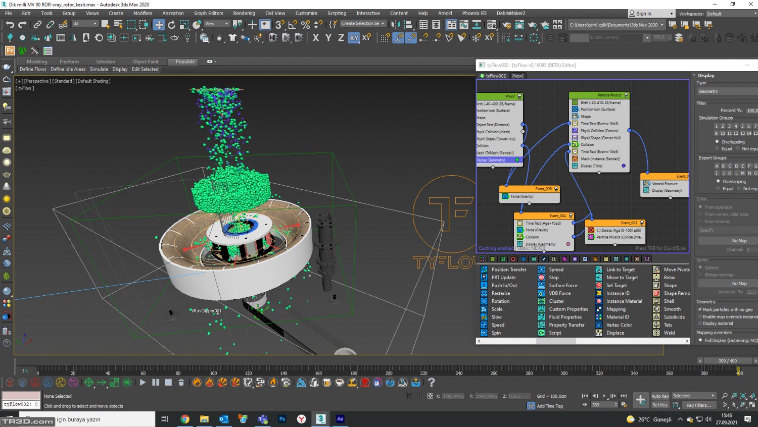 merhaba arkadaşlar; aylardır üzerinde çalışıpta çözemediğim tyflow hakkında bilgisi olan arkadaş varsa çok minnettar olurum. particullerden ürettiğim taşlar 2 nesneden etkilenip geçtikten sonra 3. nesnede varoni ile parçalanmasını istiyorum ama bir türlü yapamadım bilgisi olan arkadaşlar bana +90553 458 12 20 nolu telefonumdan ulaşmalarını rica ederim. şimdiden yardımlarınız için çok teşekkür ederim.