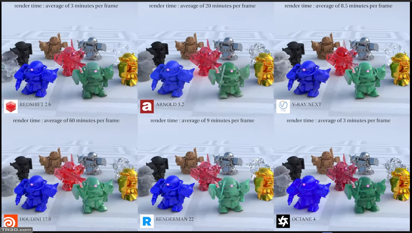 https://www.youtube.com/user/yu1roh2009 bu kanalda eleman render motolarını kıyaslamış. gayet açıklayıcı. bana göre gerçekçilik için arnold , hız için redshift. ama ev ortamındaysan bence redshift.