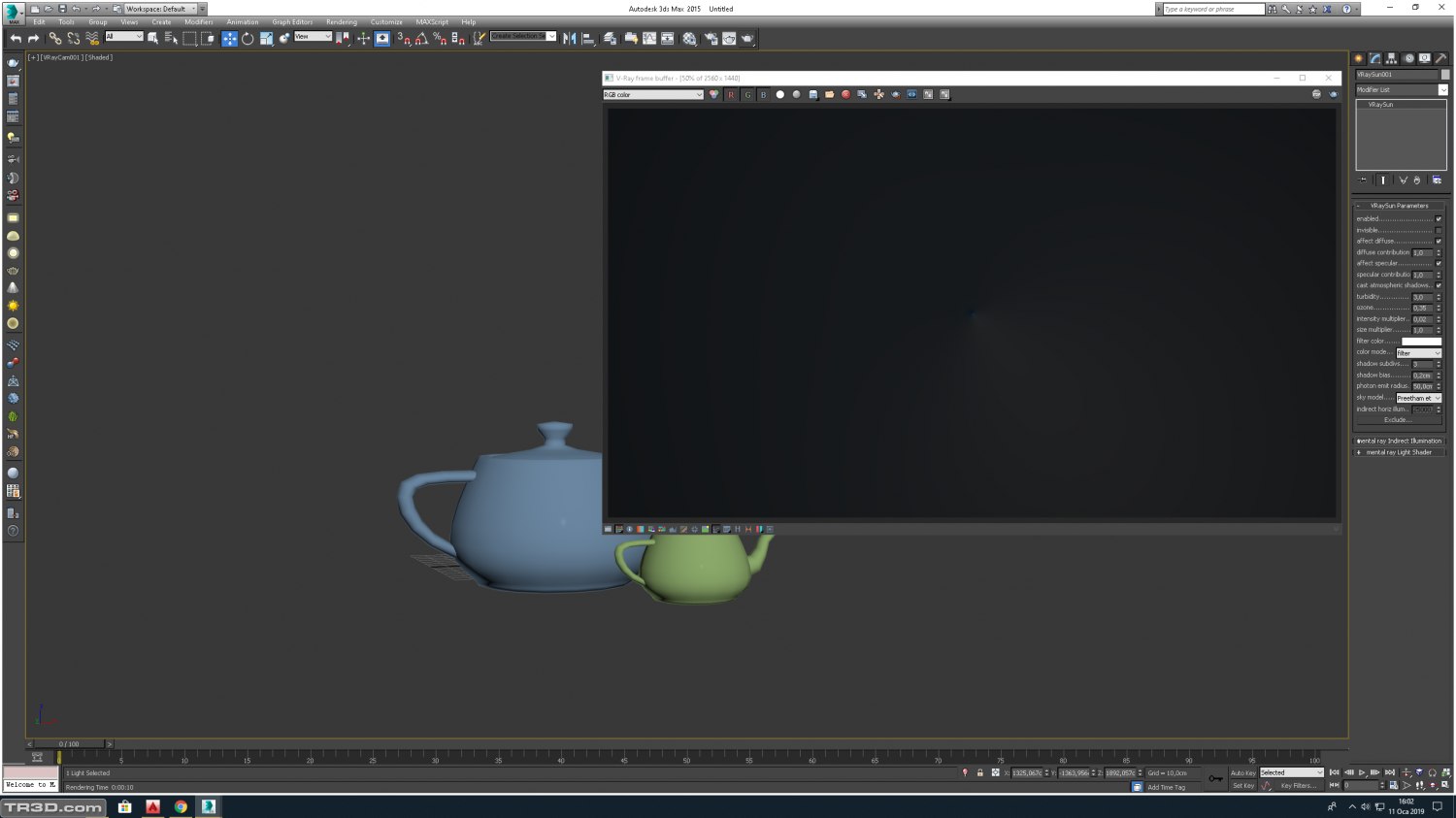 ilk olarak bir material at objene 2. olarak güneşin intenisty değerini 0,02 yap belki düzelir aklıma başka birşey gelmedi