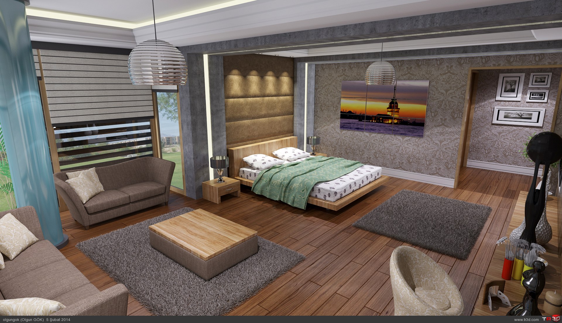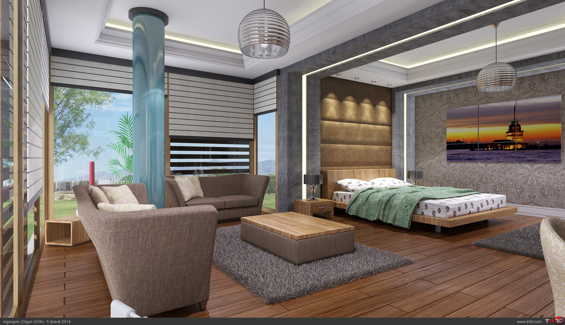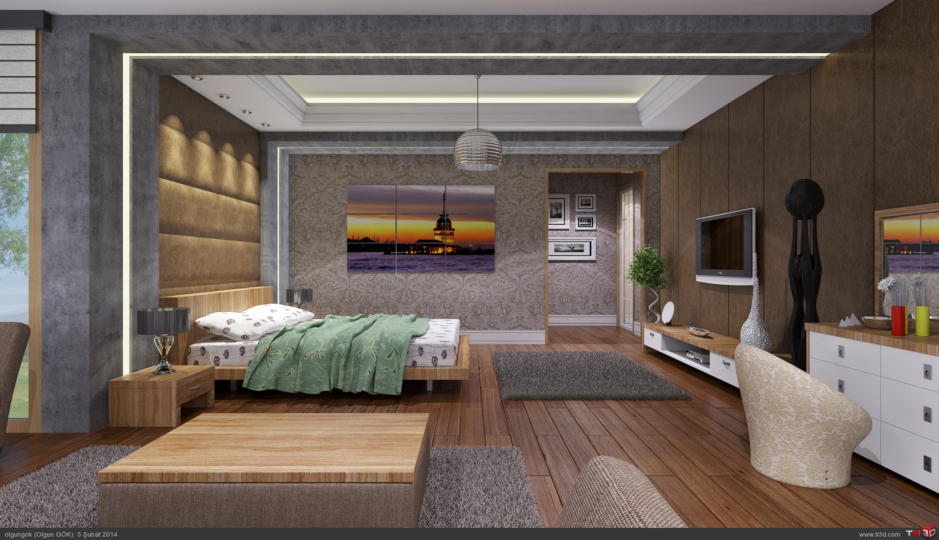 Etüd çalışması olarak yapmış olduğum bu çalışma resimdeki gibidir.Çalışmalarımı daha mükemmel hale getirmek için sizlerin de renderlarını inceliyorum.Vray render motoru ve materyaller kullanılmış olup photoshop ile desteklenmiştir.