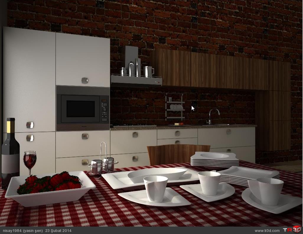 Merhaba; çok da yapıcı eleştiri olmayabilir bu yazacaklarım. Modelleme açısından beğendim. Benim bu tür mutfak çalışmam yok ancak ilk yapacağım yeni sahnenin mutfak olmasını istiyorum. ben olsaydım; sahnede gıda bulundurmak (eğer çok profesyonelce modellenmemiş ve kaplanmamış ise) çok uygun değil ve böyle modeli bulamayacağım için sahnede bulundurmam. Mutfak gereci mümkün olduğunca fazla bulundurulabilir, Işıklandırma konusunda da tezgah üstüne led ışıklandırma ve benzeri enstantaneler yapılabilir.