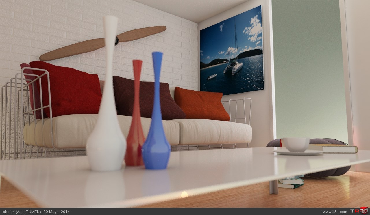 akın bey ortam güzel olmuş. photoshop ile daha güzel olacaktır. birde render ayarlarınız düşük gibi geldi. biraz yükselirse daha temiz ve gerçekçi sonuç elde edilecektir.