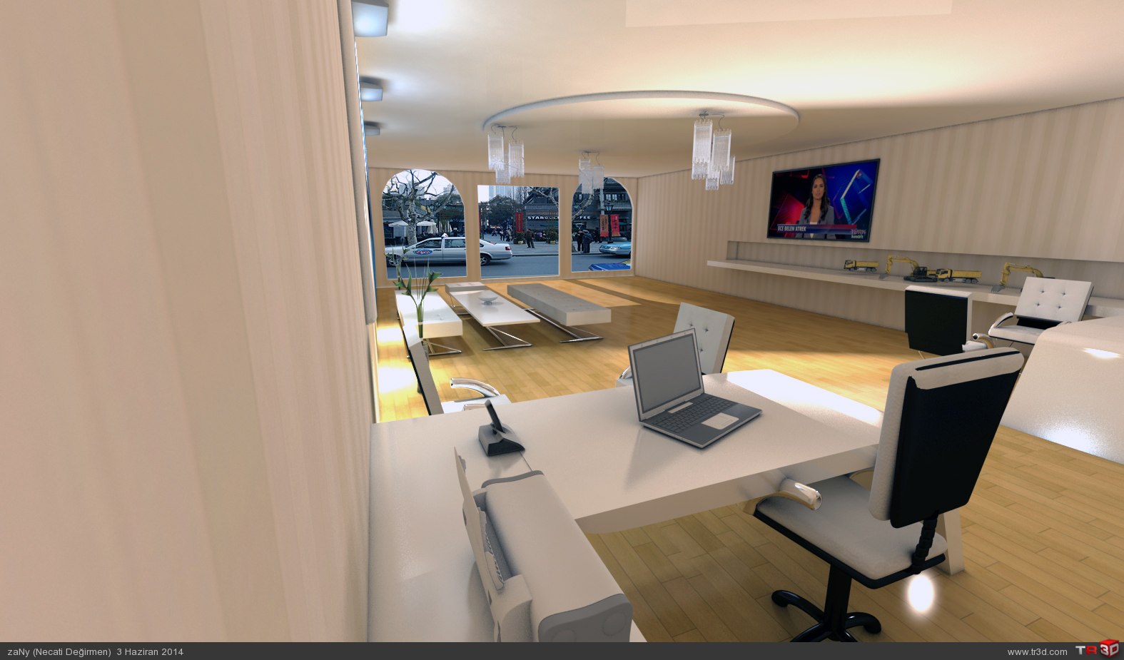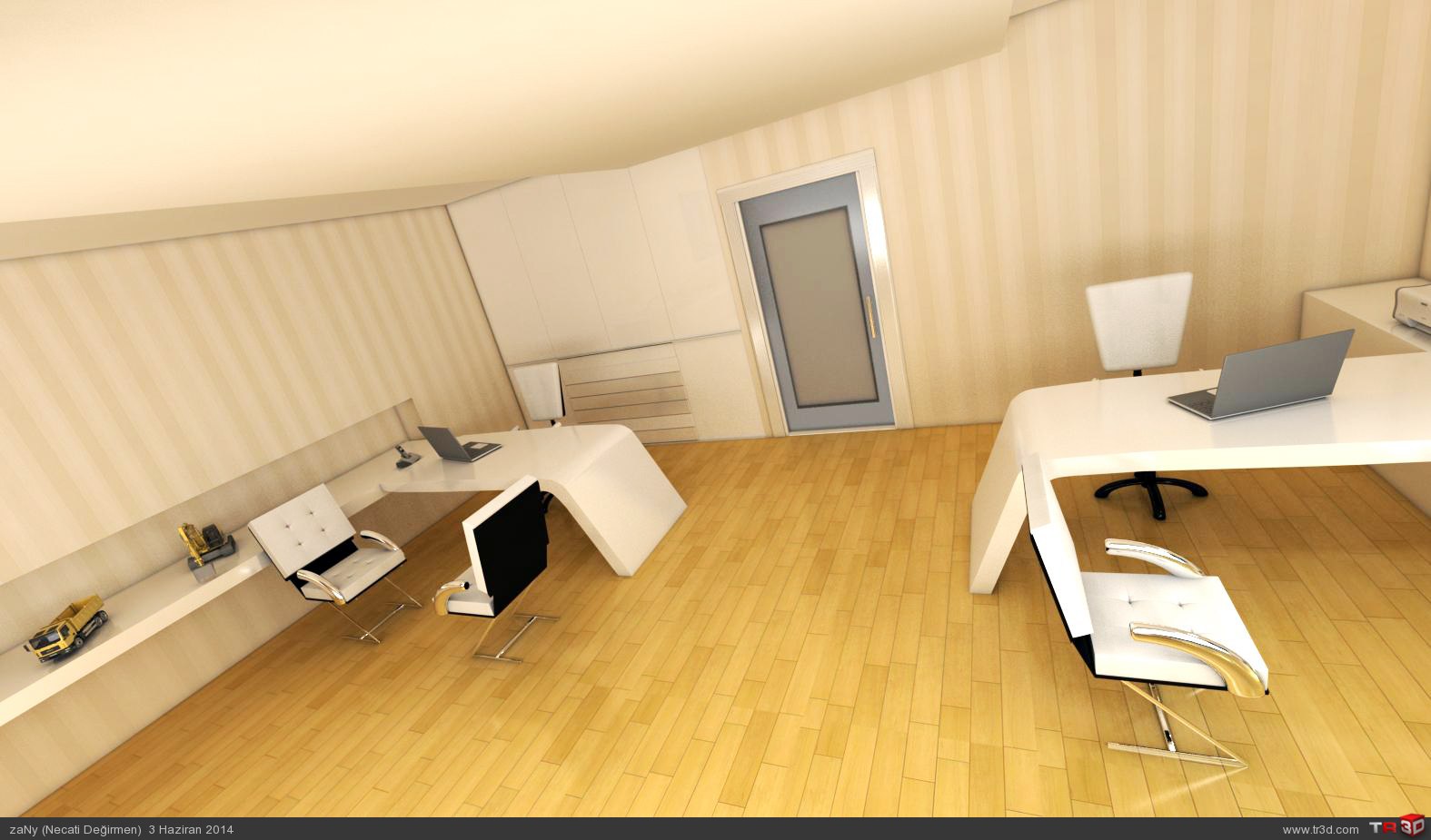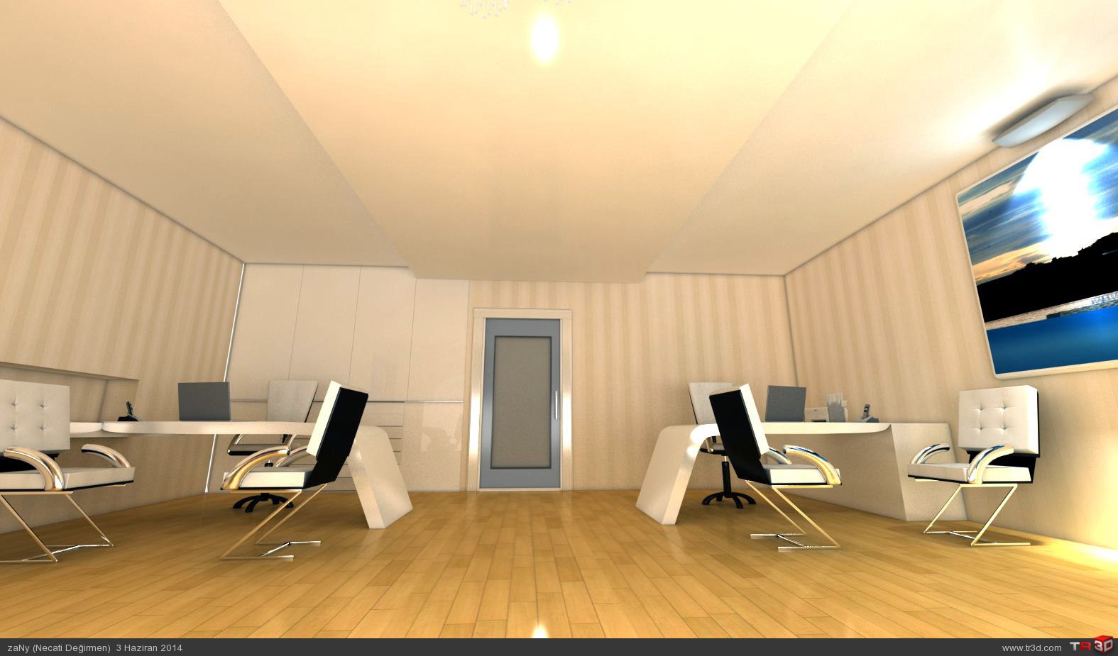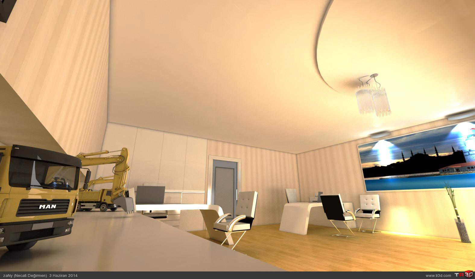 ARKADASLAR CALISTIGIM MIMARLIK OFISININ AMASYADAKI BUROSUNU MODELLEDIM.YALNIZ BU OFIS ZATEN VAR SADECE BOS VAKTIMDE SADECE RESIMLERINE BAKARAK TASARLADIM ANCAK BU KADAR BENZETEBILDIM RANDERIMI BENDE BEGENMEDIM.OMMI ILE AYDINLATMAYA CALISTIM BERBAT ETTI SONRA VRAYLIGHT ILE AYDINLATARAK ANCAK BU KADAR AYDINLATABILDIM ISIGI YUKSELTINCE DAHA PATLAMALAR OLUYOR.BENDE SIZIN ONERILERINIZE SUNUYORUM NE YAPABILIRIM BU SORUNLA ILGILI RANDERIM BIRAZ ZAYIF GALIBA GENELDE DIS MEKAN CALISMASI YAPIYORUM ISIM GEREGI AMA ISIK VE RANDER DA KENDIMI GELISTIRMELIYIM :( TESEKKUR EDERIM YINEDE HERKESE IYI CALISMALAR..