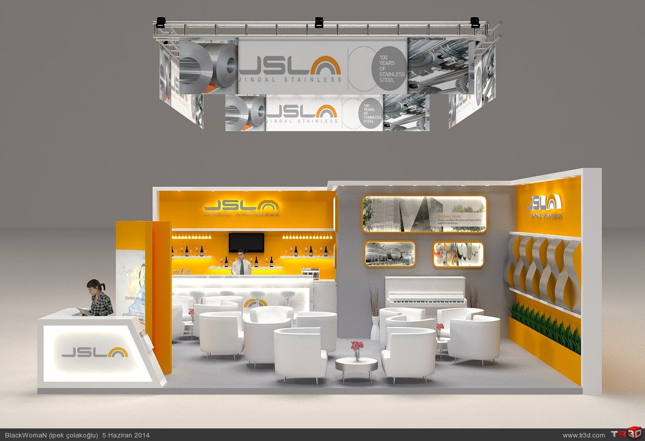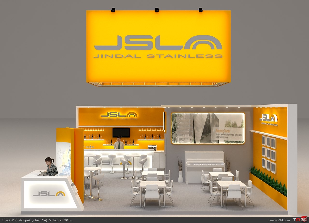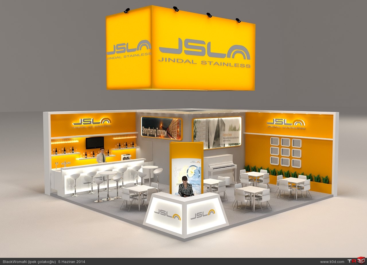 Yine 2 sene önce hazırladığım bir stand tasarımı. O zamanda Almanya bazlı bir firmadaydım ve JSL Almanya fuarına katılmaktaydı. Firma Hindistan`dan bir paslanmaz çelik levha üreticisiydi. Piyano ve bar kendi istekleriydi...Çok sevdiğim bir tasarımdır...