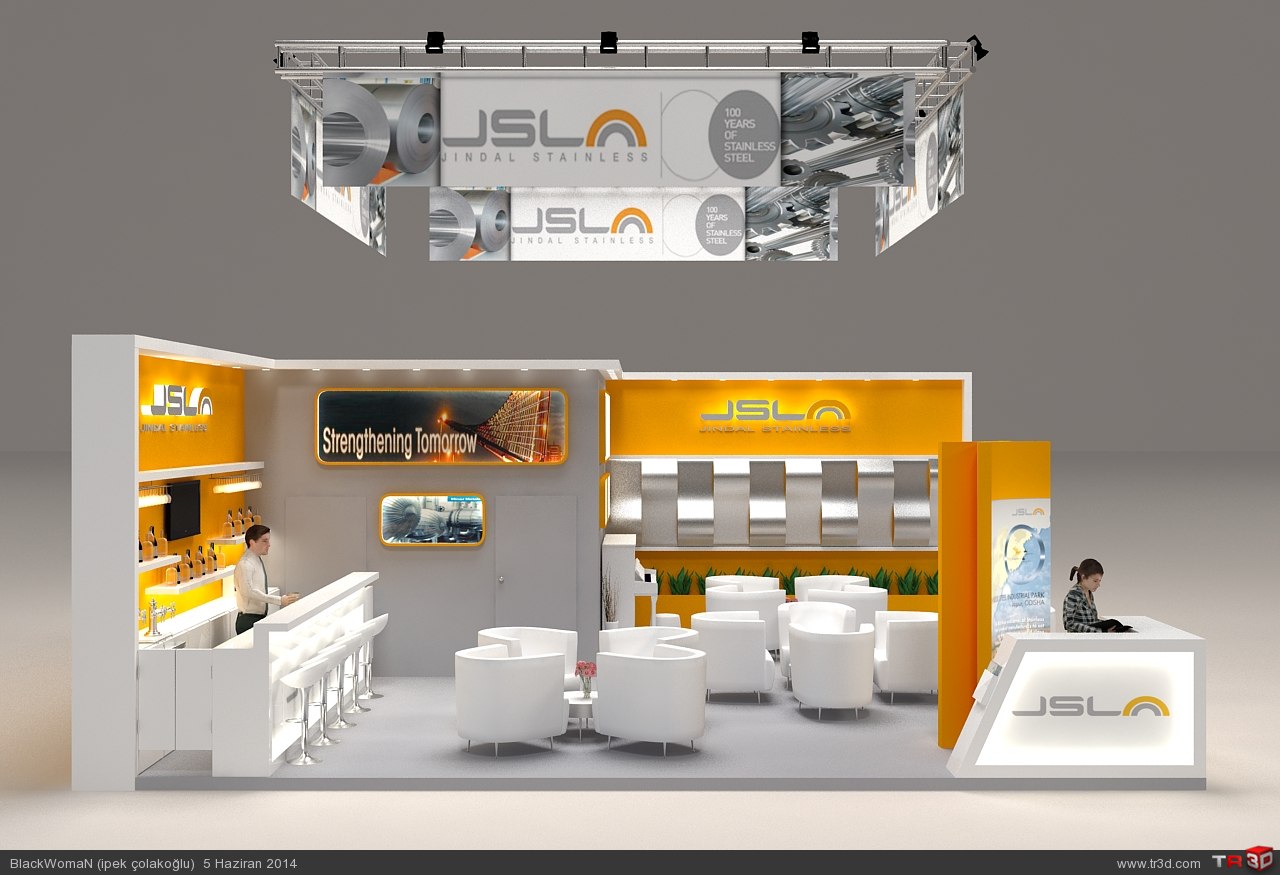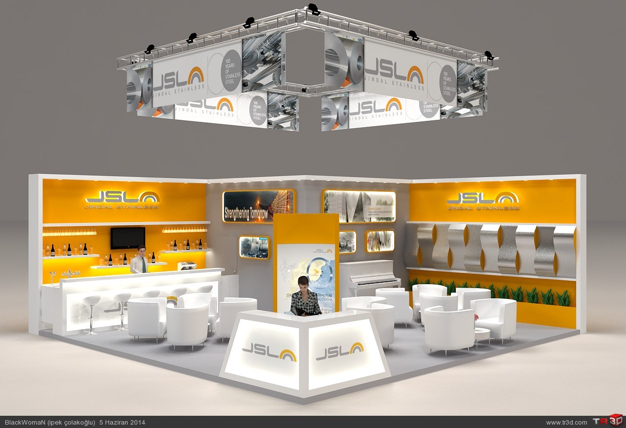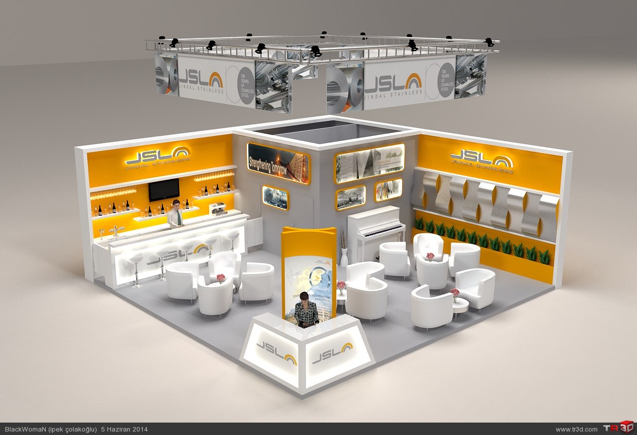 Yine 2 sene önce hazırladığım bir stand tasarımı. O zamanda Almanya bazlı bir firmadaydım ve JSL Almanya fuarına katılmaktaydı. Firma Hindistan`dan bir paslanmaz çelik levha üreticisiydi. Piyano ve bar kendi istekleriydi...Çok sevdiğim bir tasarımdır...